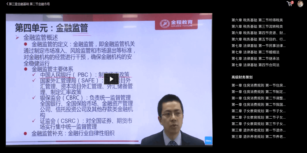 金程RFP课程内容覆盖全面理财知识体系。它所涵盖的展业人员必备专业知识,既涵盖“普通投资者关注的投资、增值、保值、子教等模块,同时也涵盖高净值客户关注的宏观、法律、税务、遗产、子教、养老”等内容,为从业者构建满足客户全生命周期财富规划能力,帮助从业者全方位满足多类别客户需求,达成可复制的个性化客户成交路径。